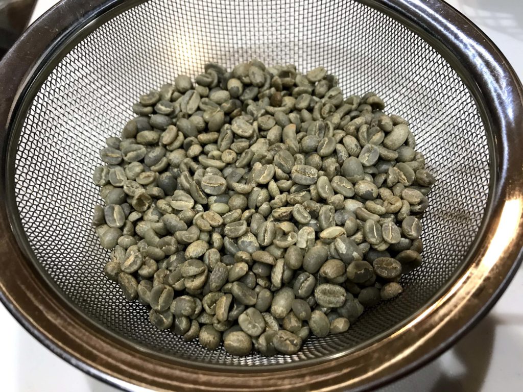 エチオピアシダモを水洗いして、いるいるで焙煎