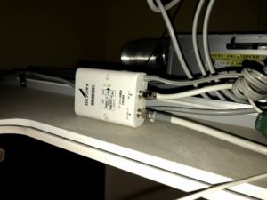 天井の蓋を開けて覗いたところ、AC100Vのコンセントが一つついていたのですが無線LANルーターを接続するため、100均で購入した3又のコンセントを増設して電源供給させています。