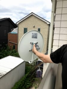 今回はBS・CS 4K,8K対応のパラボラアンテナを取り付けた方法をご紹介します。 こちらは特に屋根に上に上がらず、ベランダの手すりにクランプで挟み込む方法にて取り付けるので初心者の方でも比較的簡単に取り付けることができます。 このパラボラアンテナの取り付けで注意しなければならないのは、指向性が極めて敏感ですので角度が1度でもずれると途端にレベルが落ちて映らなくなります。