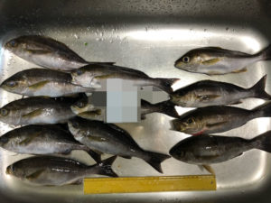 釣れたのは巨大なイスズミさん45cm 1匹とその子分が3匹、3号のハリス切られが5回と逃した獲物もおそらくイスズミ。