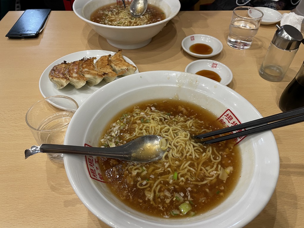 担々麺の普通の辛さを2つと餃子を1枚注文。