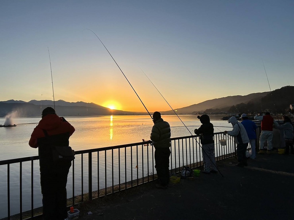 今年もショッカー殿と2人で昨年に続き1年ぶりに諏訪湖にワカサギ釣りに訪問した。