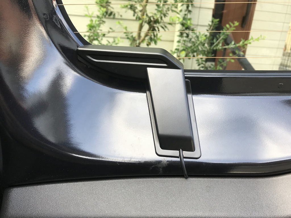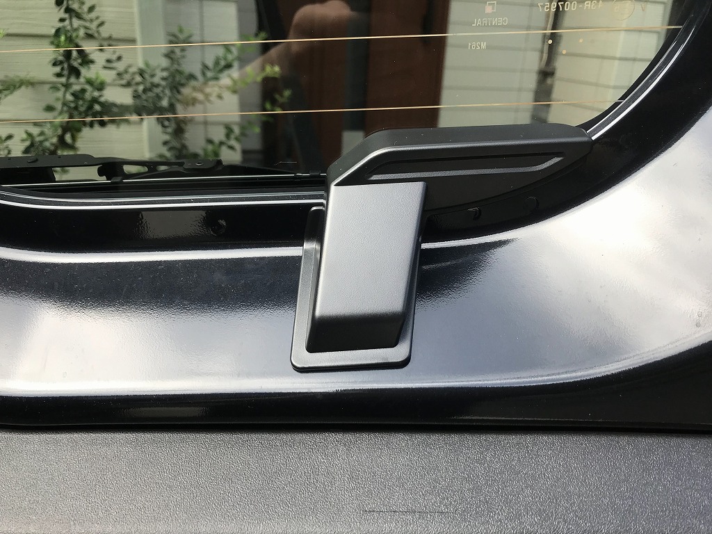 品物は樹脂製でバックドアとの取り付けは両面テープで固定するものになっております。
