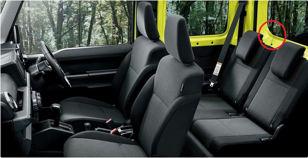 通常ジムニーのリヤデフォッガーは細い線によって配線されているだけであって、むき出しのままでは荷室の荷物が移動したり、この線に引っ掛かって断線する恐れが外形上見た感じで誰もがそう思う状態です。