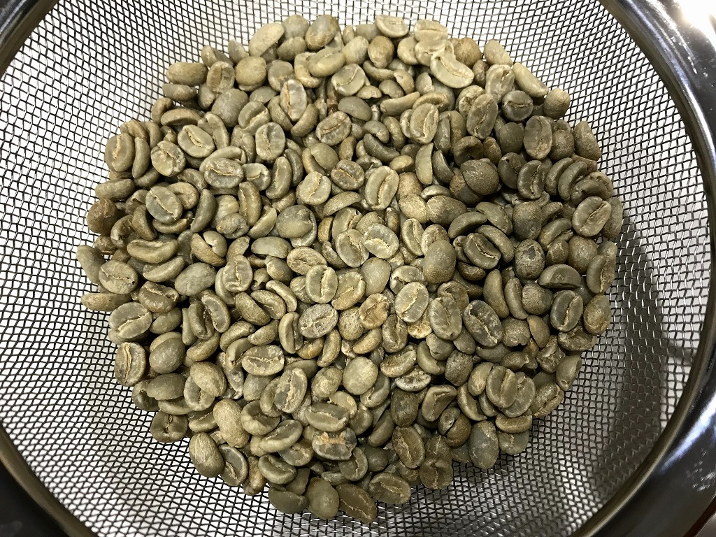 さすがに1年近く保管していた関係から生豆の色も緑→黄土色に変わりつつあります。