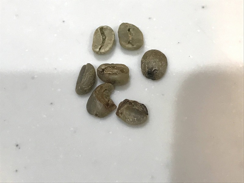 他は豆が欠けたり虫食い?のような感じの状態なので焙煎が均一に仕上がらないので除きます。